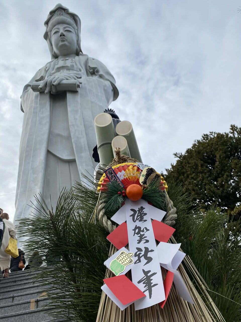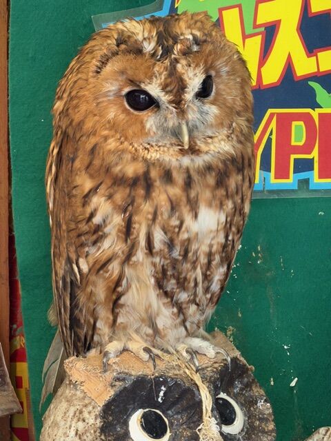 写真:群馬県、高崎白衣観音さま。 置物のフクロウの上に立ってる本物のフクロウの「福ちゃん」 『不苦労』な一年をお過ごし下さいませね