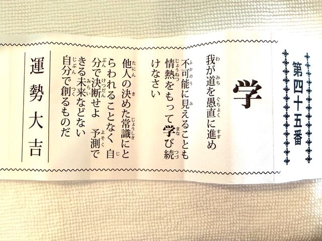2026年のチャレンジは長年の夢でもありましたから、それを実現するためにも今年、漢字一文字に込めるMizkoの抱負は「学」。 それは神様のお導きでもあるようです (写真右おみくじ)