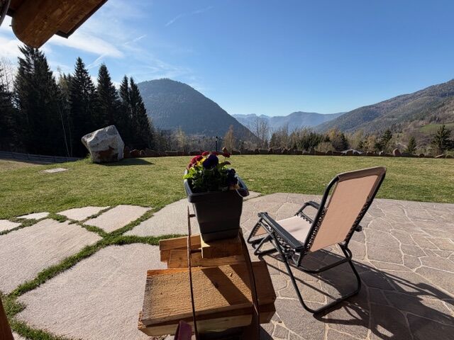 (写真右:chaletのテラス。暑い日には、タンクトップ着て、冷たいビールを飲むMizko専用のチェアー🍺)